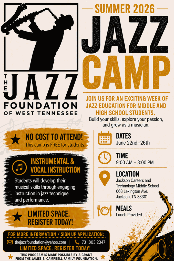 The Jazz Foundation of West Tennessee, non-profit, 501(c)(3) corporation, was formed to provide for the study, research, promotion and preservation of jazz and blues music culture unique to Jackson and West Tennessee. The Foundation is committed to the development of the jazz and blues tradition in West Tennessee, and increased public awareness of the existence and value of that tradition.